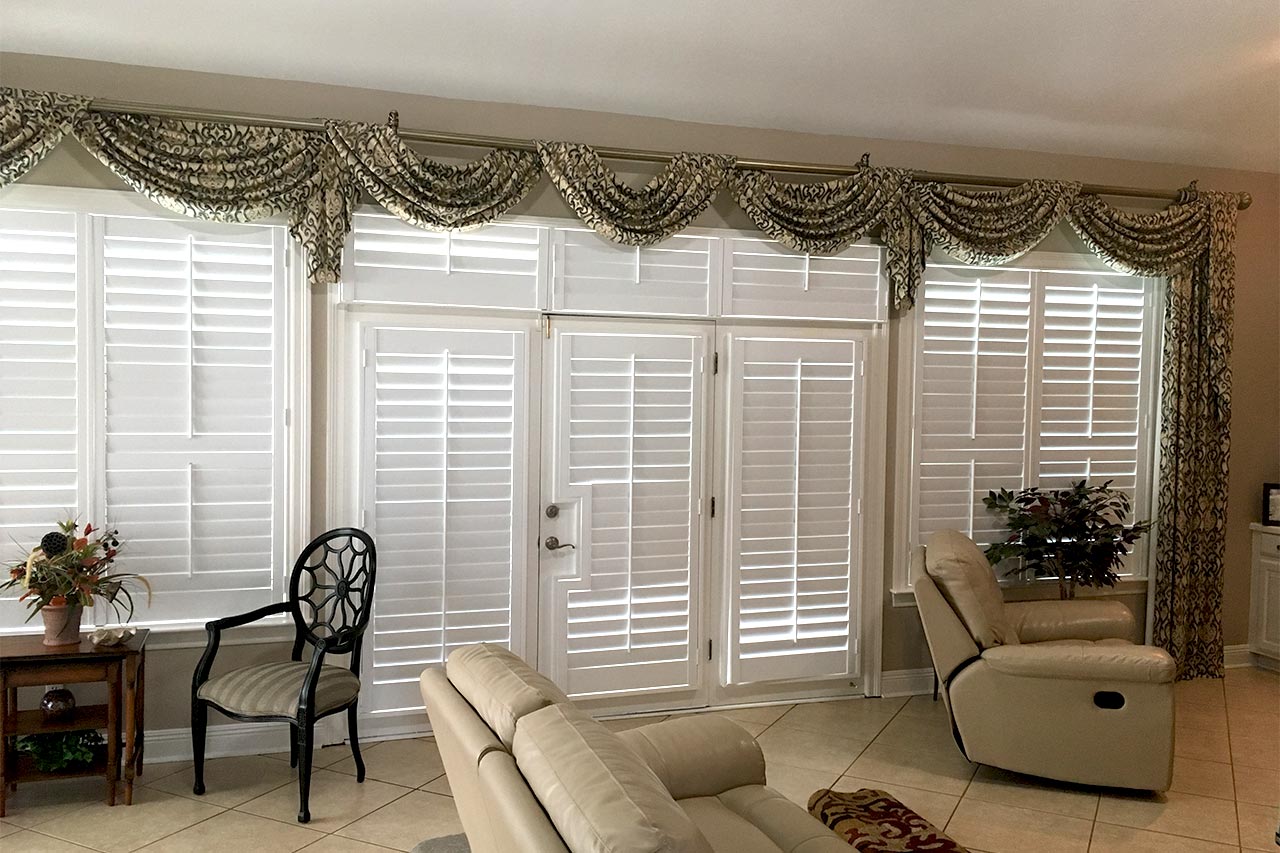 In order for curtains to work best with your plantation shutters, you will want to use a curtain rod that is long enough to allow for pushing the curtains all the way to the side to open the shutters. To give windows a more finished and polished look in the house, it is a good idea to install siding such as plantation shutters, venetian blinds or roman shades. To cover the interior windows of a home with plantation shutters averages $2,300, and most homes range from $1,450 to $3,360 for these types of shutters.